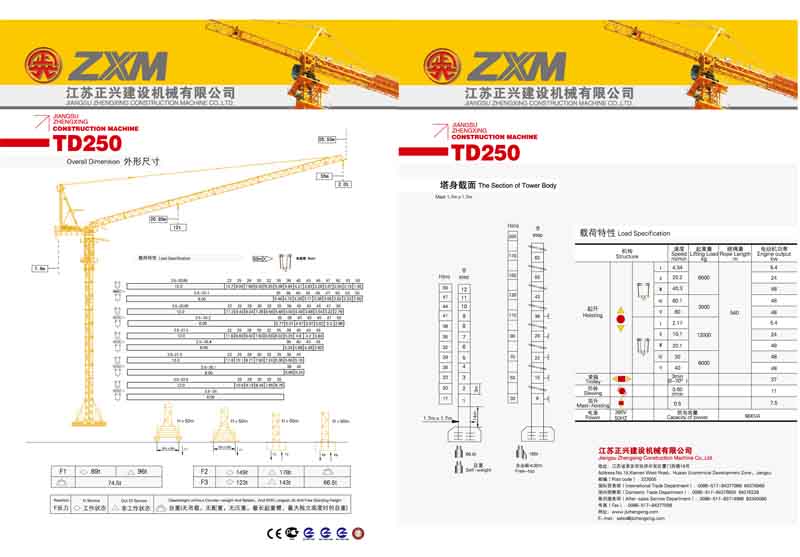 2、最大工作幅55米,最大起重量12噸,末端最大起重量2.0噸,額定起重力矩2500KN.M;