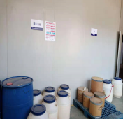四樓原料儲存區:已增加了產品名稱標示牌與安全周知卡 三樓罐裝車間:已劃分了擺放區域